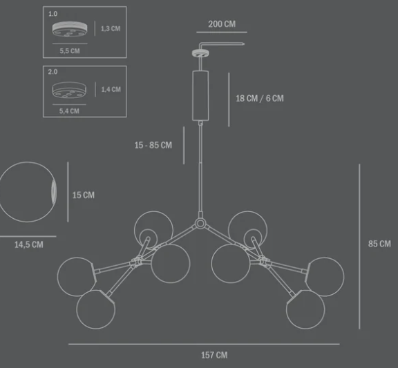 101 Copenhagen Drop Bulb Big, Designový lustr průměr 157cm, 8xE14