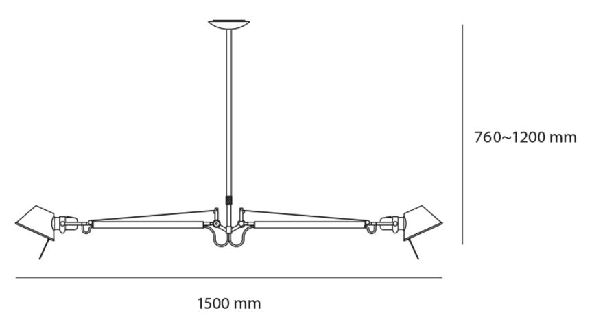 Artemide Tolomeo 2 Bracci, designová stropní lampa, Aluminium 2xE27