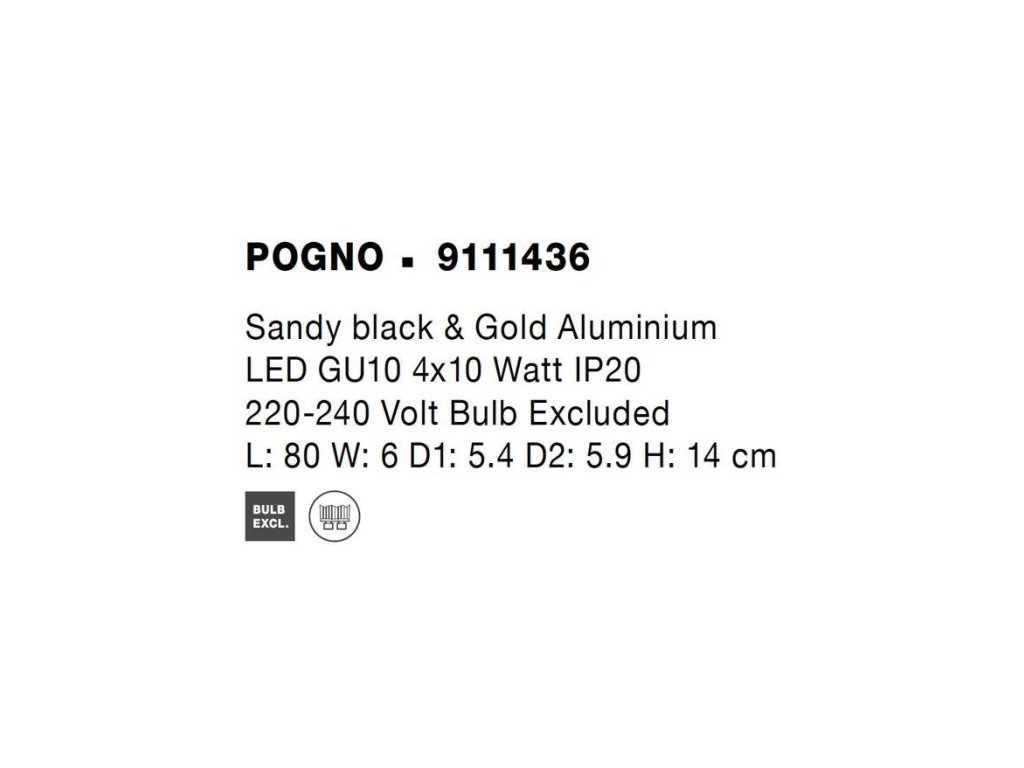 Bodové svítidlo POGNO černá a zlatý hliník GU10 4x10W IP20 220-240V bez žárovky - NOVA LUCE