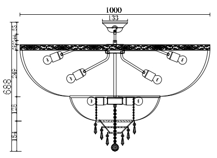 Precizně propracovaná mosazná konstrukce je osazena 18 světelnými zdroji typu E27 (není součástí balení), které dokonale prozařují množství křišťálových hranolů, vytvářejících podmanivou hru světla a odlesků. Elegantní tvar kopule a precizní detaily v podobě jemného gravírování na okrajích podtrhují výjimečnost tohoto svítidla. Lustr je ideální do reprezentativních prostor, salonů, tanečních sálů, luxusních rezidencí i stylových hotelových lobby.