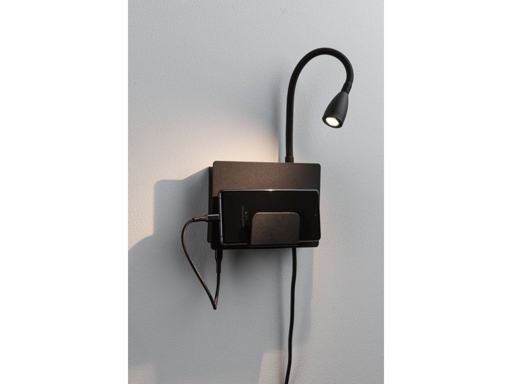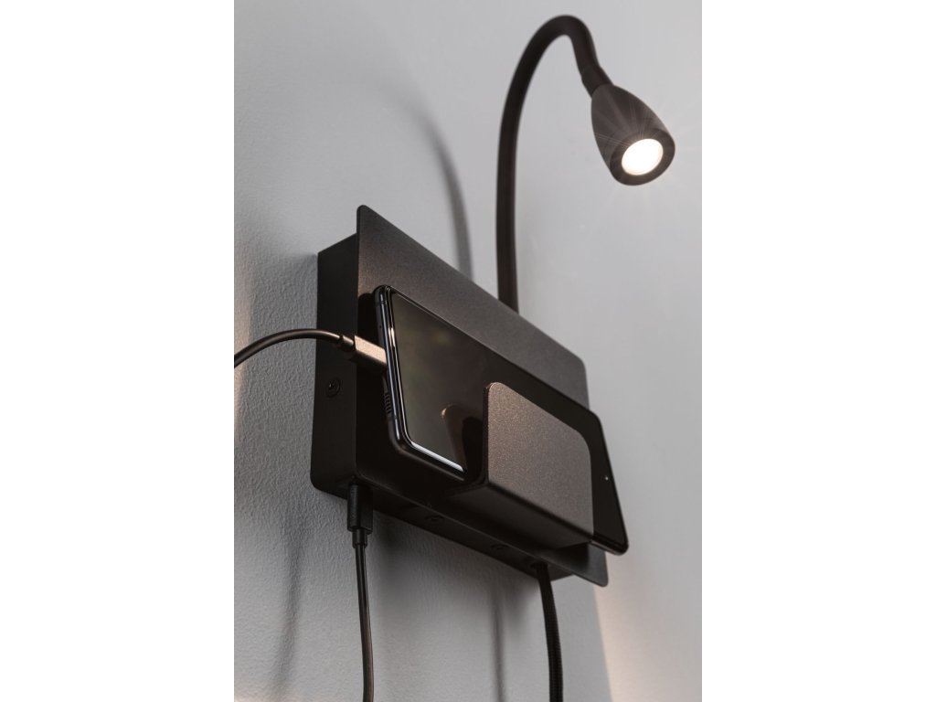 LED nástěnné svítidlo Halina USB C 2700K 230V 2,4W černá mat - PAULMANN