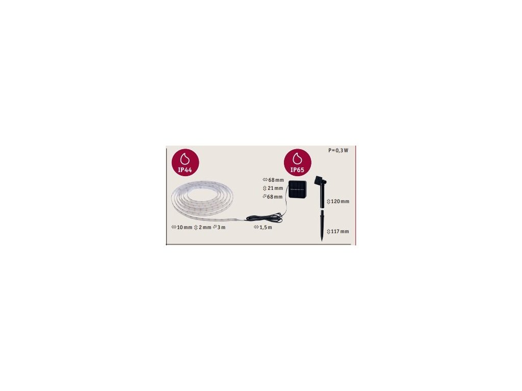 LED pásek solární 3m soumrakový senzor a nabíjecí baterie IP44 0,3W 60LEDs/m 2700K - PAULMANN
