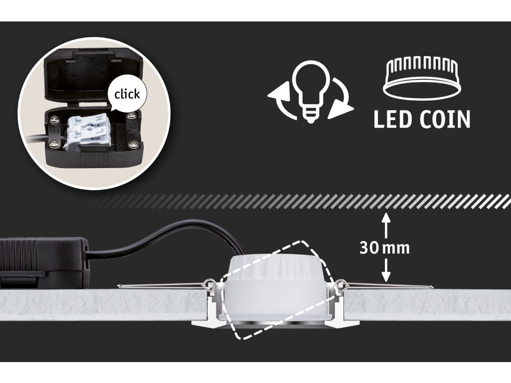LED stropní svítidlo 3-krokové-stmívatelné Turnal Coin 2700K 230V 6W stmívatelné černá mat - PAULMANN