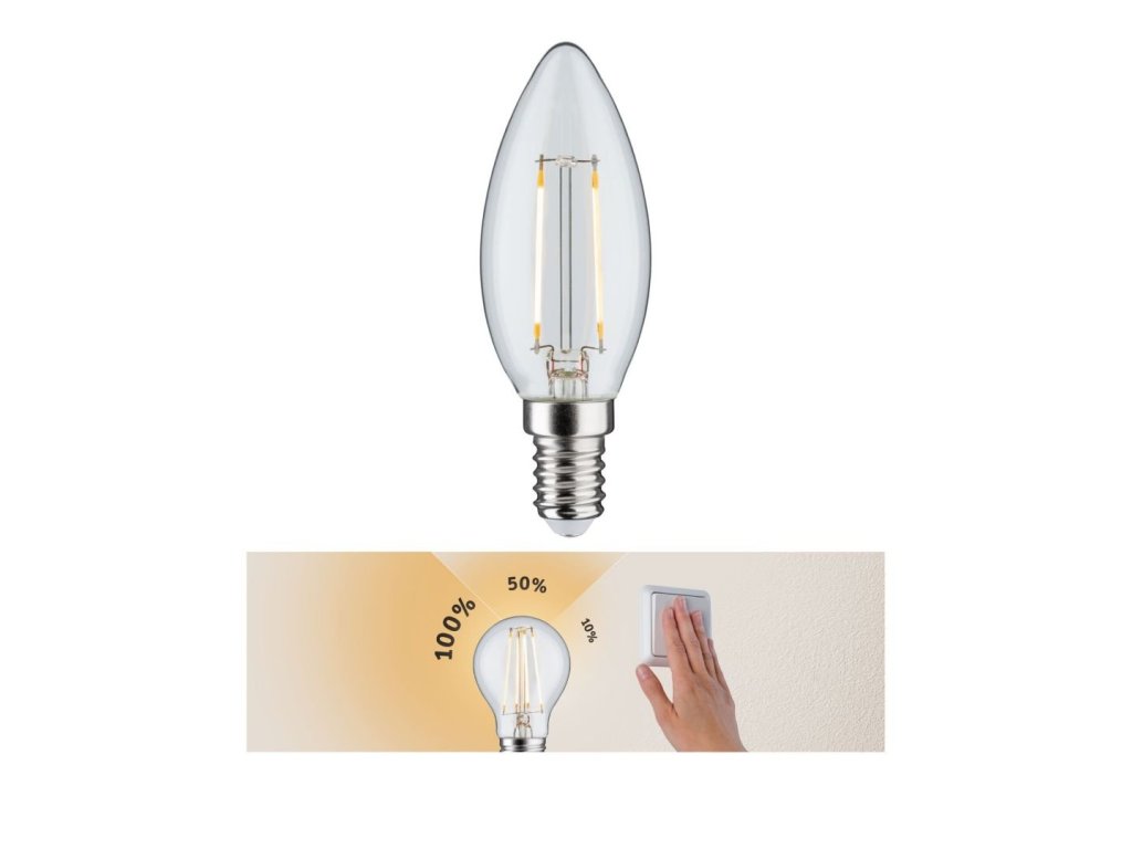 LED svíčka 2,5W E14 čirá 230 V 3-krokové-stmívatelné - PAULMANN