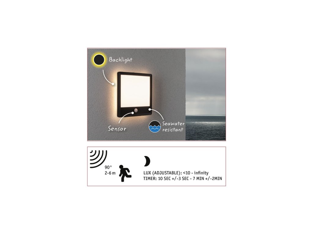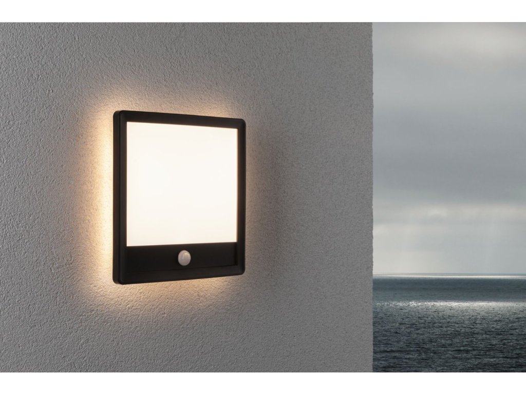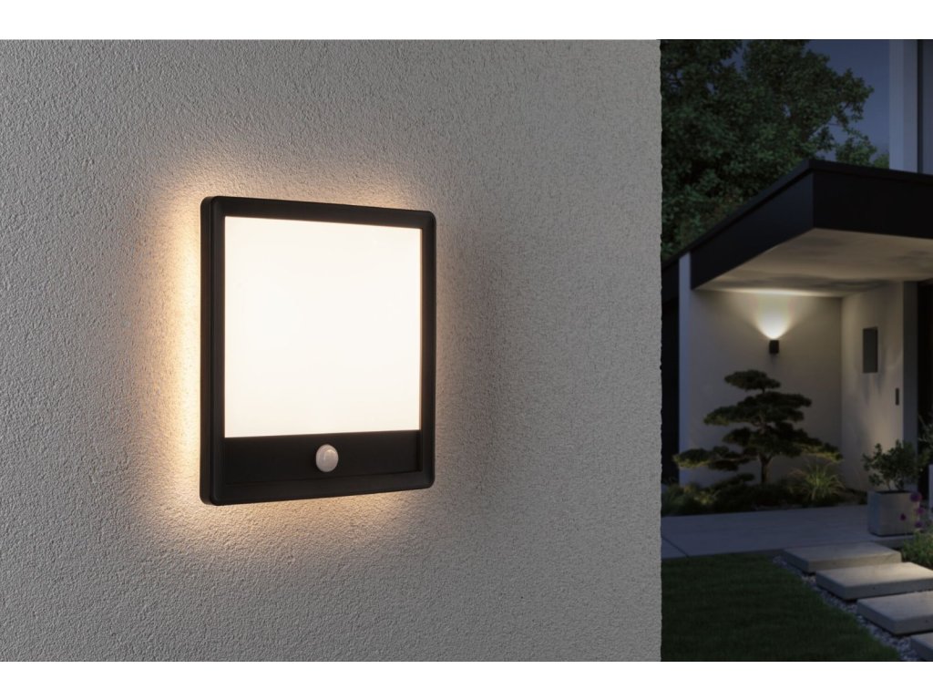 LED venkovní panel Lamina vč. pohybové čidlo IP44 hranaté 250x250mm 3000K 14,5W 230V černá umělá hmota - PAULMANN