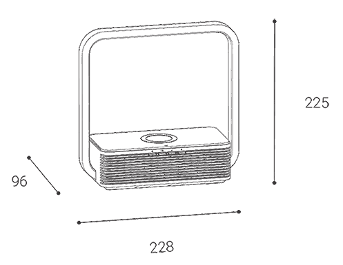 Tělo svítidla je vyrobeno z kombinace kovu a PC (polykarbonátu), což zajišťuje odolnost a moderní vzhled. Svítidlo je dostupné v čisté bílé barvě a díky kompaktním rozměrům 228 × 96 × 225 mm se hodí do různých interiérů, kde je požadována elegantní dekorativní forma.