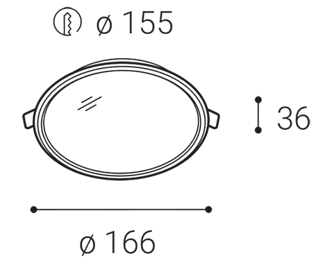 Konstrukce z kvalitních materiálů ABS a PMMA zaručuje odolnost a dlouhou životnost. Díky nízké výšce (36 mm) a montážnímu otvoru Ø 155 mm je instalace snadná a rychlá. Krytí IP20 předurčuje svítidlo pro použití v suchých interiérech.