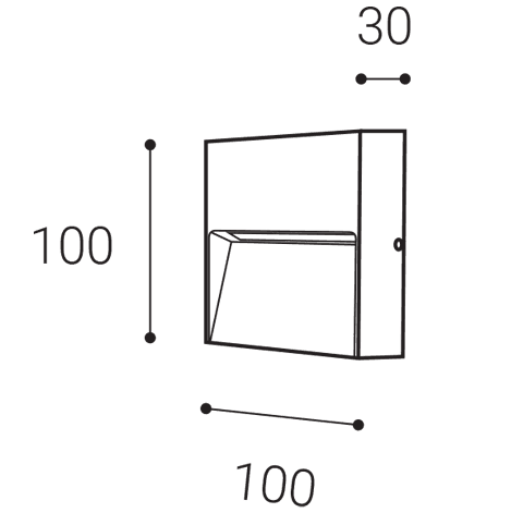 Svítidlo je vyrobeno z kvalitního hliníku a skla, má velmi kompaktní rozměry 100 × 100 × 30 mm a elegantní antracitovou barvu (RAL 7024), která ladí s moderní architekturou. Je osazeno úsporným SMD LED čipem s příkonem 3 W, světelným tokem 175 lm a teplou bílou barvou světla 3000 K.