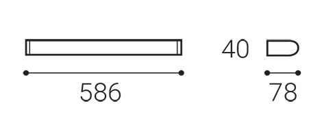 - Rozměry 586 x 78 x 40 mm – kompaktní rozměr vhodný nad menší i středně velká zrcadla.