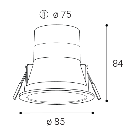 - Kompaktní rozměry – Ø 85 mm x výška 84 mm, montážní otvor Ø 75 mm.