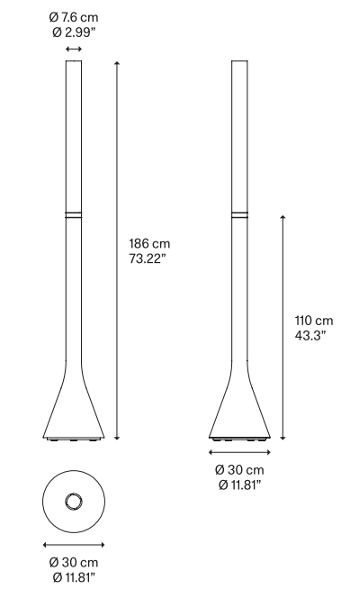 Tvar lampy připomíná dynamickou, směrem vzhůru zúženou trubku. Spodní průměr činí 30 cm, horní 7,6 cm.