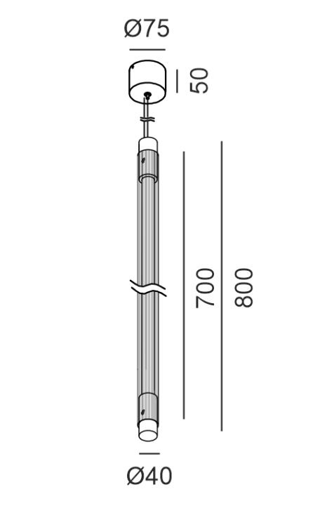 LTX Crystal Vetro, Závěsné svítidlo 80cm,ø4cm, LED 10W, 1800-3000K, 476lm, DC24V, Sklo/Mosaz