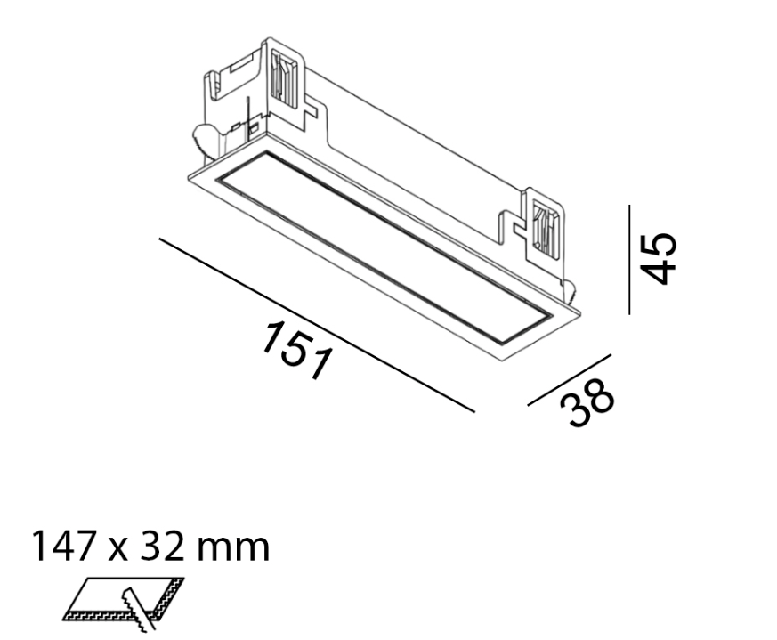 Tělo svítidla má délku 151 mm, šířku 38 mm a výšku 45 mm. Nabízí světelný výkon 585 lumenů při příkonu pouze 4,2 W, což zajišťuje velmi úsporný provoz. Vyzařuje příjemné teplé bílé světlo (3000 K) se širokým rozptylem 110°. Svítidlo má vysoký index podání barev CRI > 90 a je k dispozici v černé nebo bílé barvě.