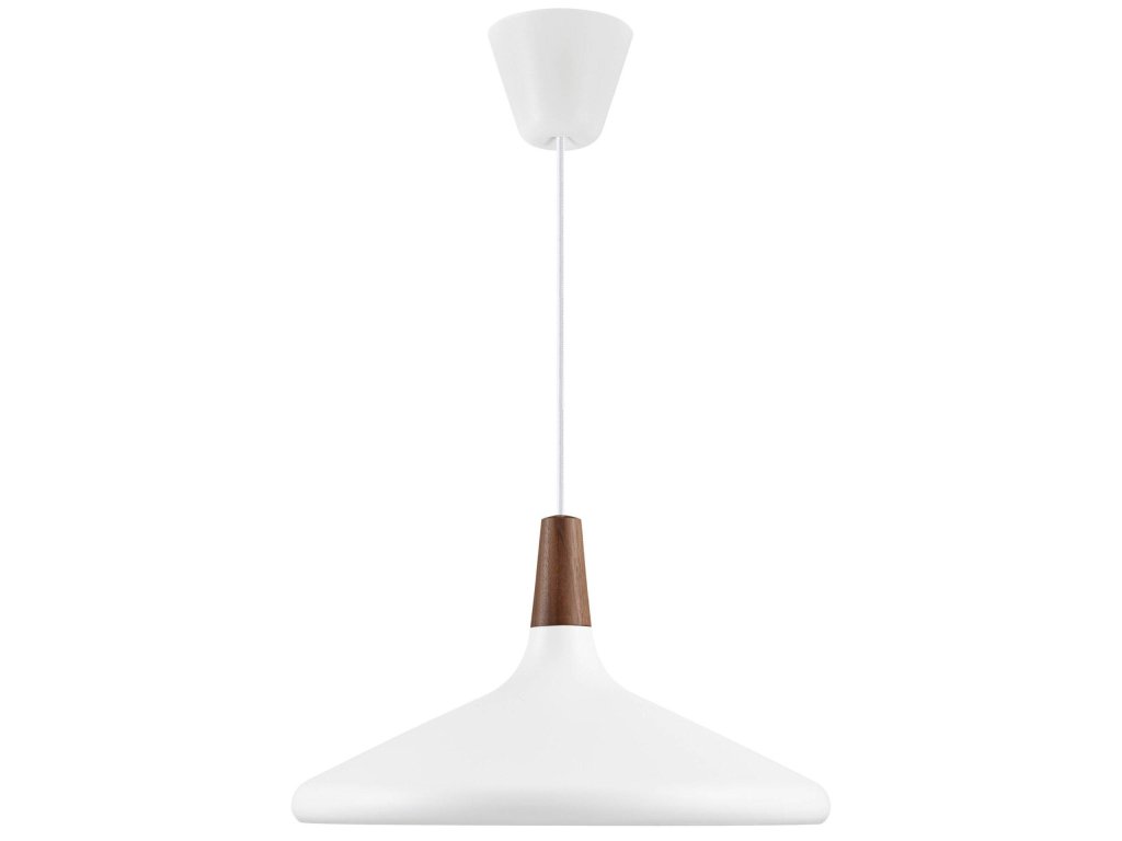Bílá barva lustru NORDLUX Nori bude vždy nadčasová a bude symbolizovat čistotu a dokonalost. U tohoto svítidla Nori se designérům z Nordlux navíc podařilo posunout svítidlo do zajímavější roviny, a to vzhledem k použití dřevěné vrchní části. Kombinace kovu a dřeva k sobě ladí a pokud použijete správnou LED žárovku E27, pořídíte si nejen designový kousek, ale svítidlo s dostatečným výkonem. Lustr Nori vynikne jako originální prvek nad kuchyňský ostrůvek nebo jako solitérní závěsný lustr nad jídelní stůl, hodí se i jako osvětlení obývacího pokoje či ložnice. Nabízíme několik zajímavých velikostí a průměrech.