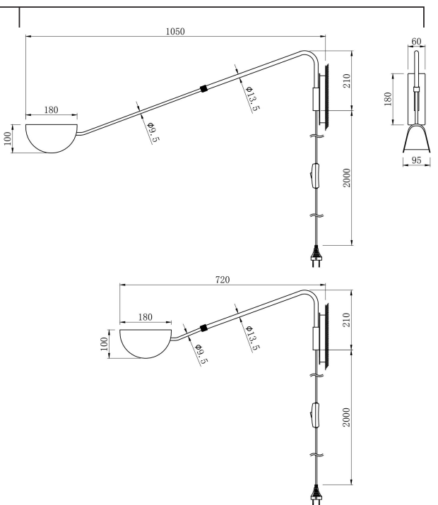 Maytoni Mollis, Nástěnná lampa 72-105cm, Černá 1xG9 7W