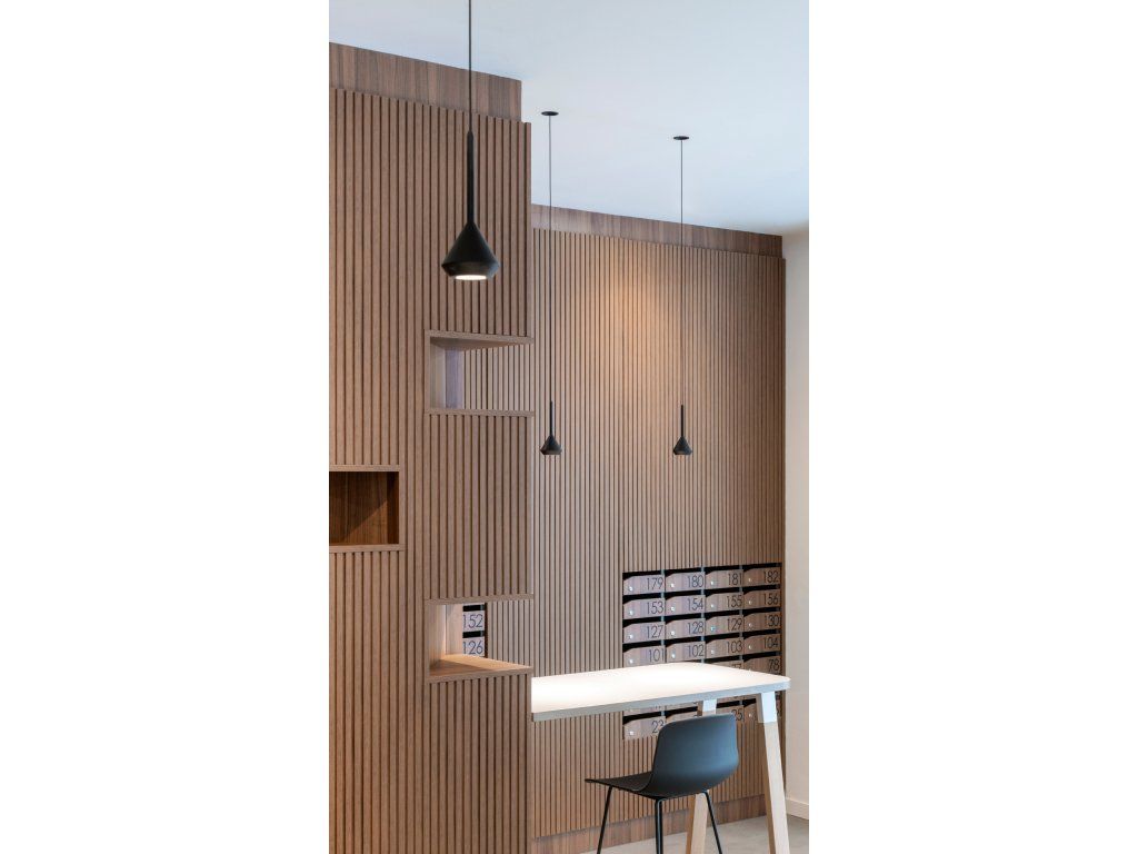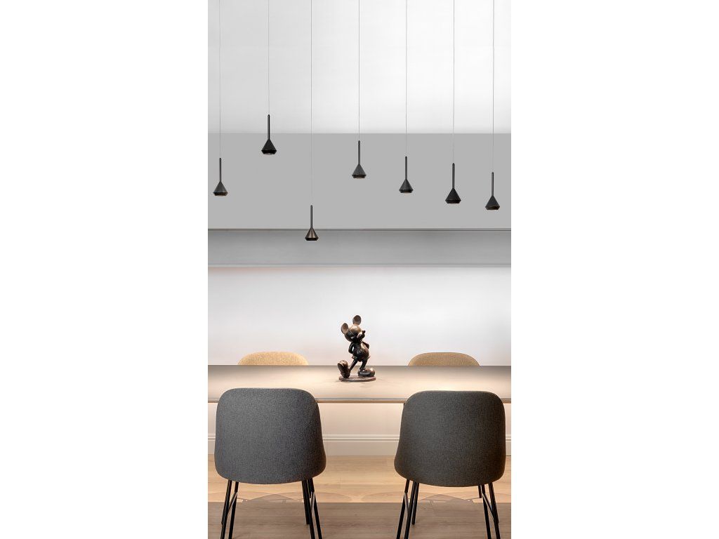 Minimalistické závěsné a vzdušné svítidlo do interiéru. Svítidlo je vyrobené z hliníkového odlitku s povrchovou úpravou v barvách bílá nebo černá. Vyrábí se v barvách světla 2700K, 3000K i 4000K. Vhodné pro osvětlení vysokých galerií, schodů, recepce, baru, kuchyňského ostrůvku nebo jako svítidlo nad noční stolek.