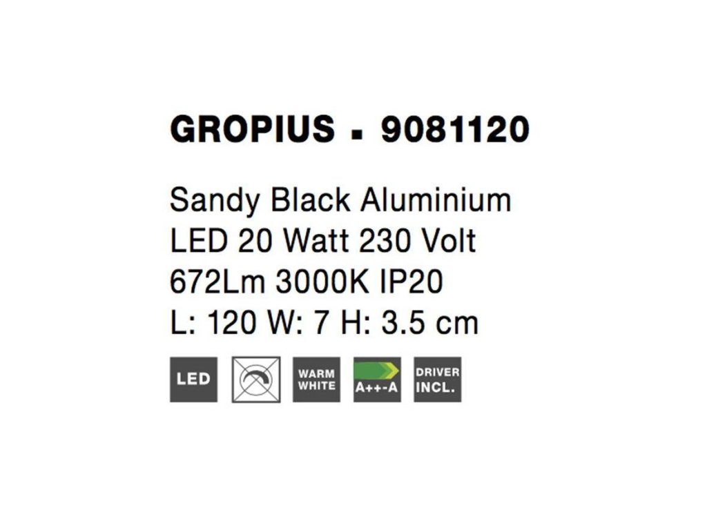 Nástěnné svítidlo GROPIUS černý hliník LED 20W 230V 3000K IP20 - NOVA LUCE