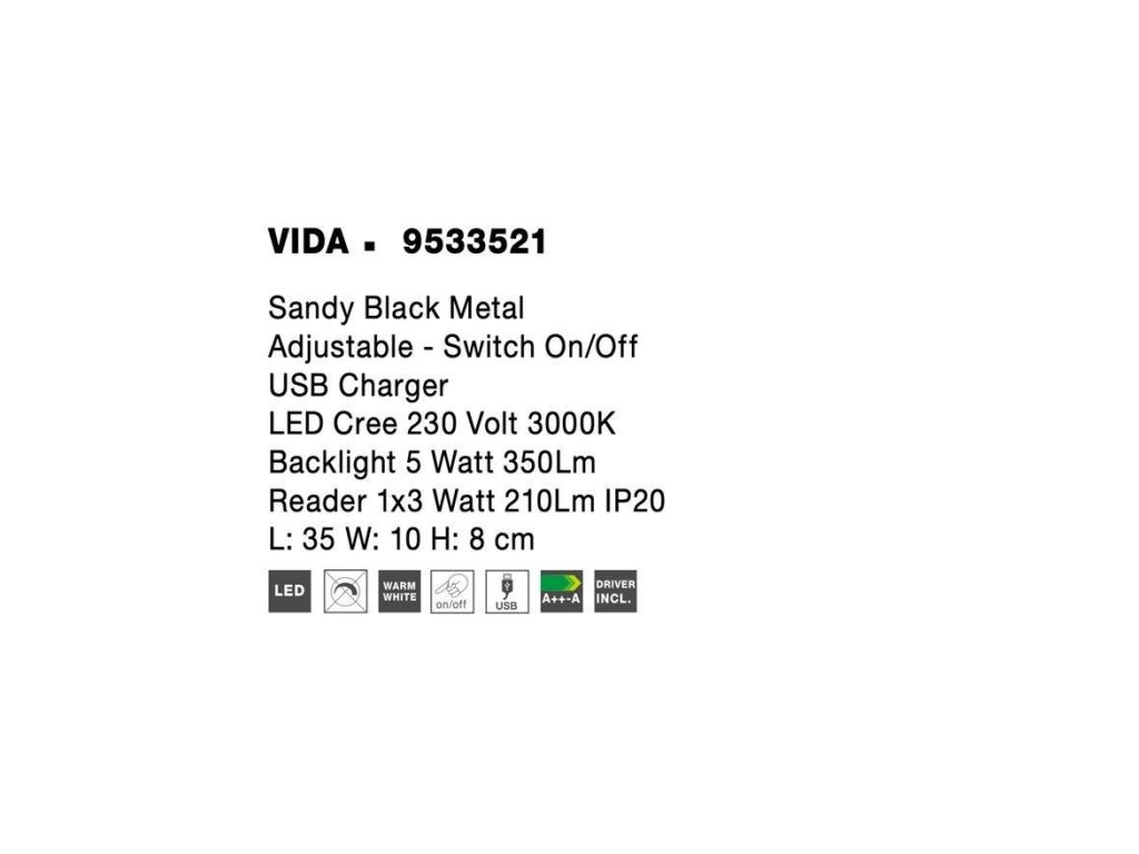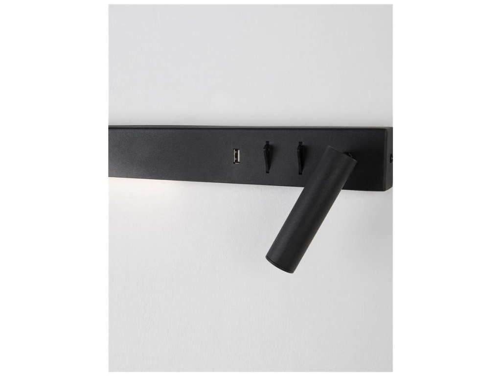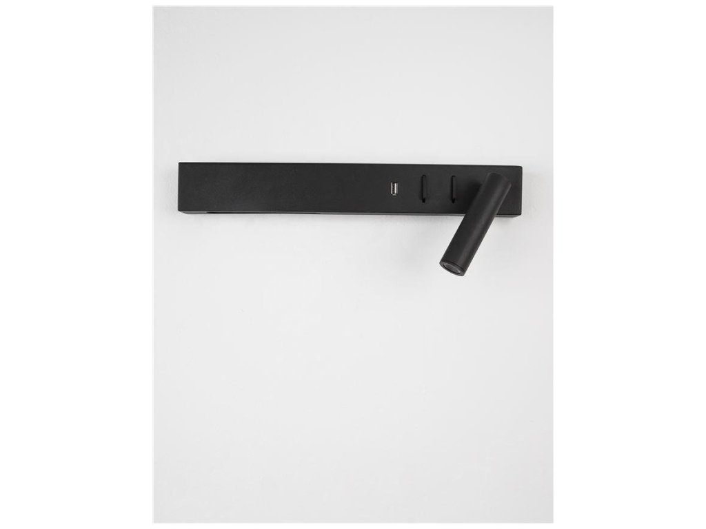 Nástěnné svítidlo VIDA "levé" černý kov nastavitelné - vypínač na těle USB nabíjení LED Cree 230V 3000K osvětlení 5W čtecí lampička 1x3W IP20 - NOVA LUCE