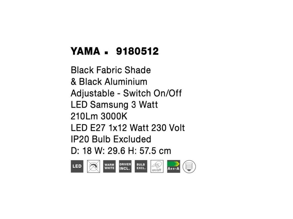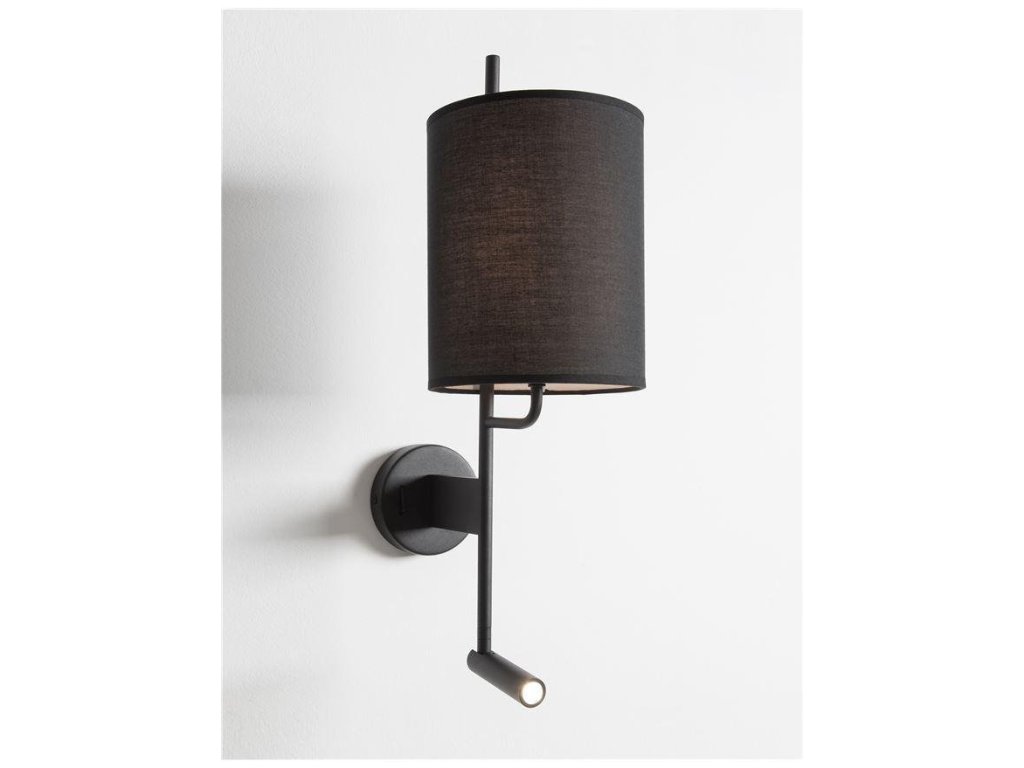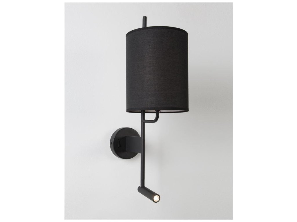 Nástěnné svítidlo YAMA černé stínidlo a černý hliník nastavitelné - vypínač na těle E27 1x12W 230V IP20 bez žárovky LED Samsung 3W 3000K čtecí lampička - NOVA LUCE