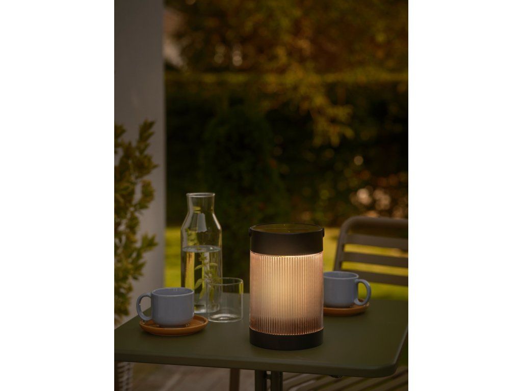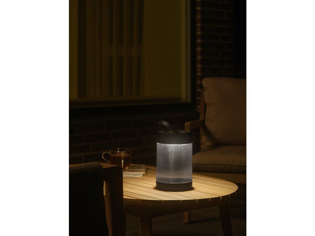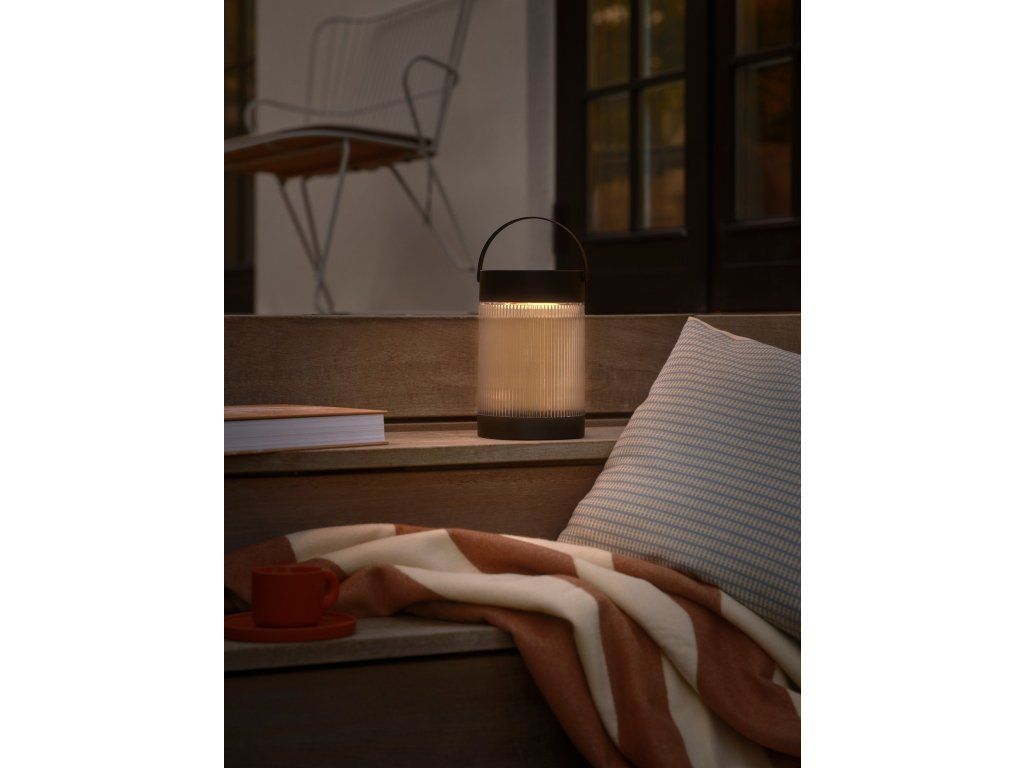 Solární přenosná lampa Coupar výrobce Nordlux vyniká stylovým designem i čistými liniemi. Její žebrovaný difuzor vydává tlumené rozptýlené světlo. Lucerna se během dne nabíjí slunečním světlem, večer a v noci je příjemným osvětlením pergoly, venkovního sezení a můžete si ji vzít jako lucernu na procházku. Baterie se nabíjí 3,5 hodiny a její výdrž je až 12 hodin. Lampa je stmívatelná, intenzitu světla je lze ztlumit ve třech krocích. Pro rychlé nabití je možné připojení přes USB kabel. Díky vysokému stupni krytí je lucerna odolná vůči nepříznivým povětrnostním podmínkám.