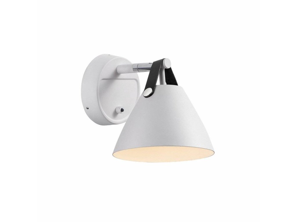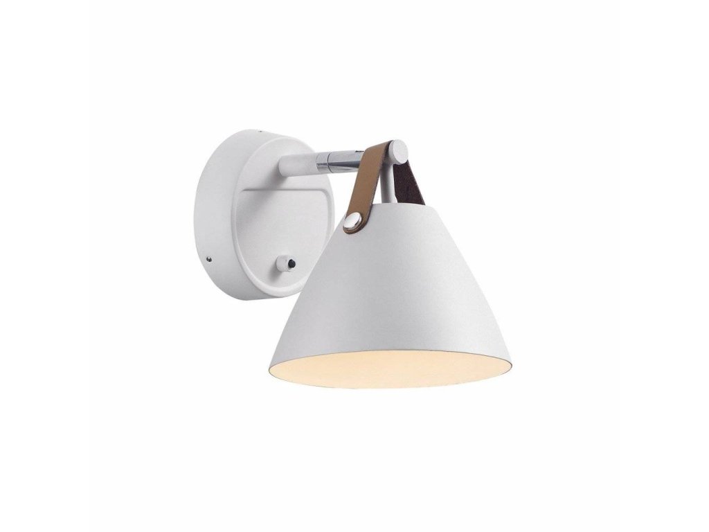 Nástěnná lampička NORDLUX Strap 15 zaujme designovým provedením, které kombinuje kovové stínidlo a netradiční doplněk v podobě koženého popruhu. Ten je v balení ve dvou barevných provedeních - hnědý nebo černý, takže si výsledný vzhled svítidla vyberete v závislosti na interiéru.