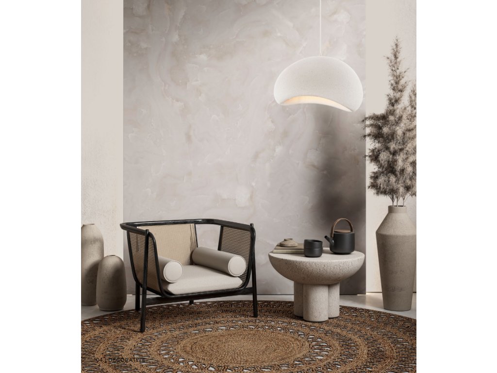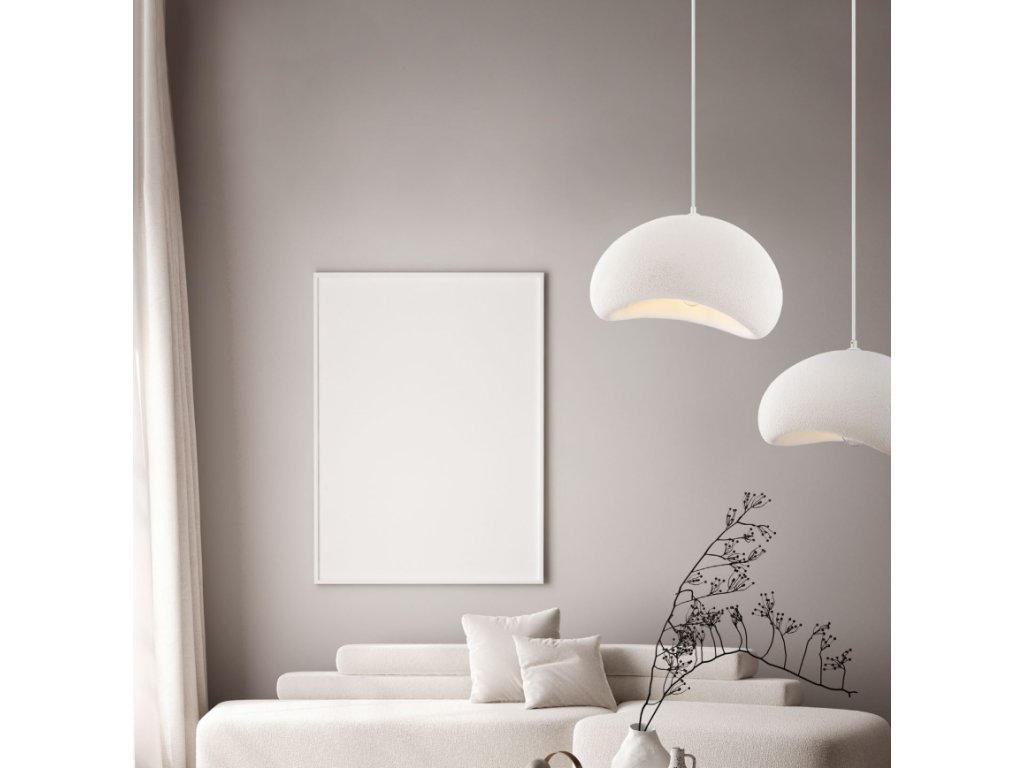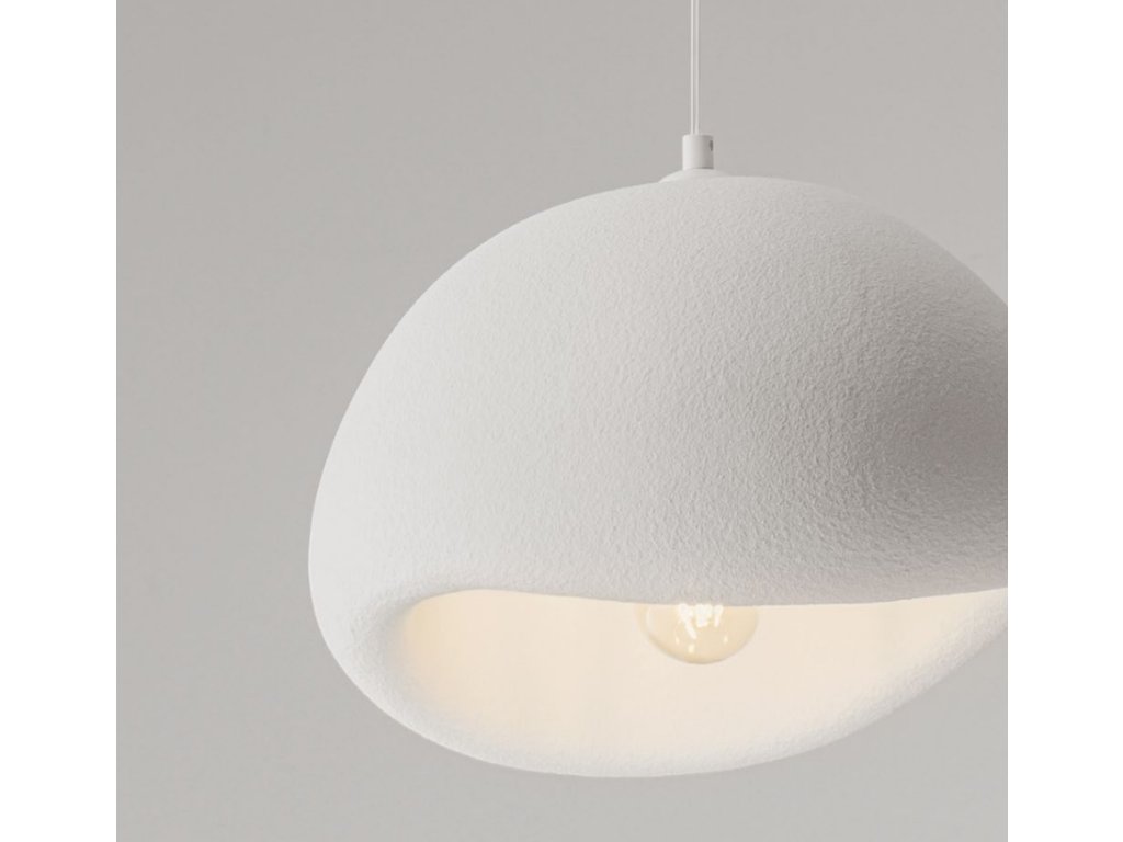 Designové závěsné svítidlo AERE v pískově bílé barvě je ztělesněním moderní elegance a organického tvarosloví. Svými ladnými křivkami připomíná přírodní oblázky nebo mušle, díky čemuž dokonale zapadá do interiérů laděných v minimalistickém, skandinávském i japandi stylu.