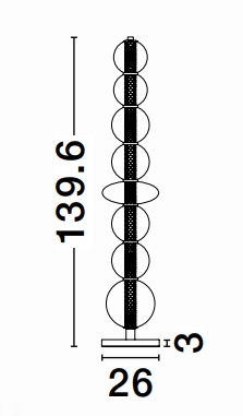 Lampa je tvořena elegantní konstrukcí ze zlatě lakovaného kovu a kouřově šedého skla. Vertikální tělo zdobí dekorativní světelná trubice, která prostupuje sérií skleněných koulí a vytváří jedinečný světelný efekt. Dotykové ovládání s funkcí stmívání umožňuje přizpůsobit intenzitu světla dle aktuální nálady.