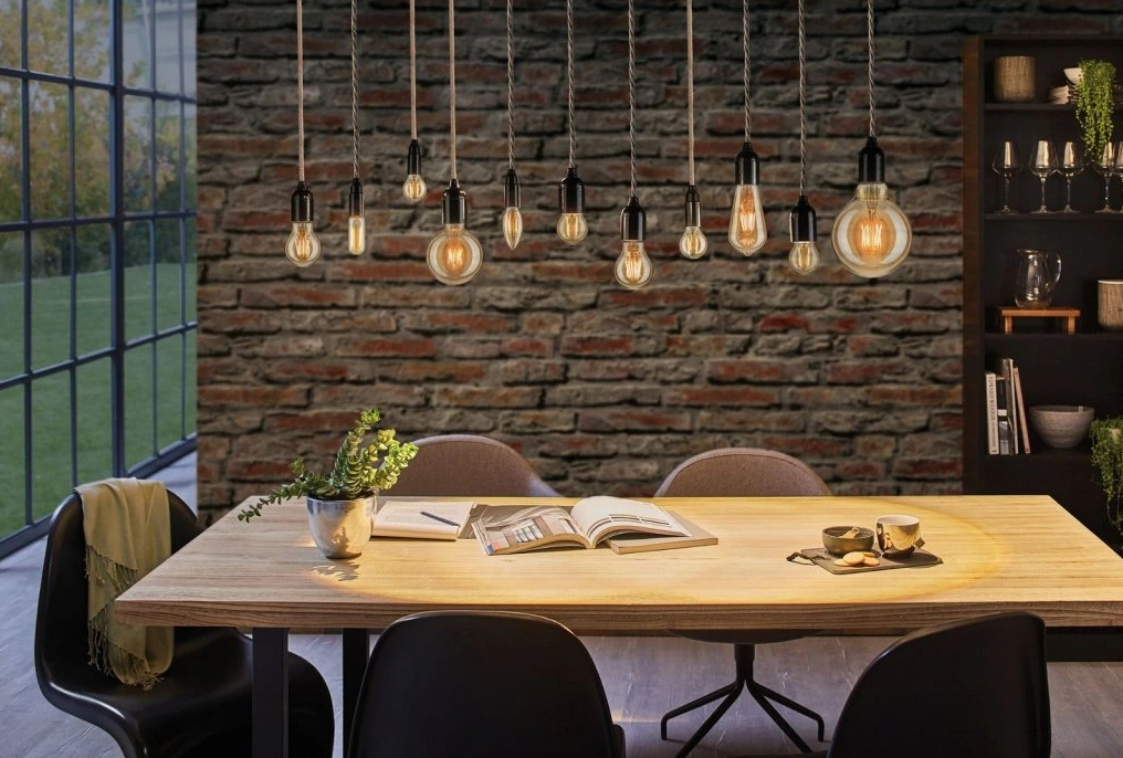 🏠 Vytvořte sestavu více svítidel v různých výškách nad jídelním stolem nebo barem.