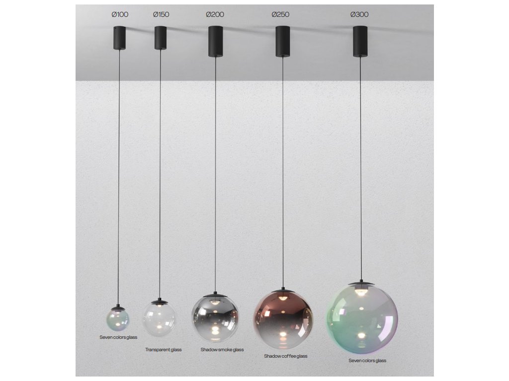 Každá varianta pracuje se světlem jinak – od čistého průhledného vzhledu až po jemně tónované sklo, které dodává svítidlu hloubku a charakter.