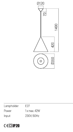 REDO GROUP KONOS, E27 ZÁVĚSNÉ SVÍTIDLO, 35CM