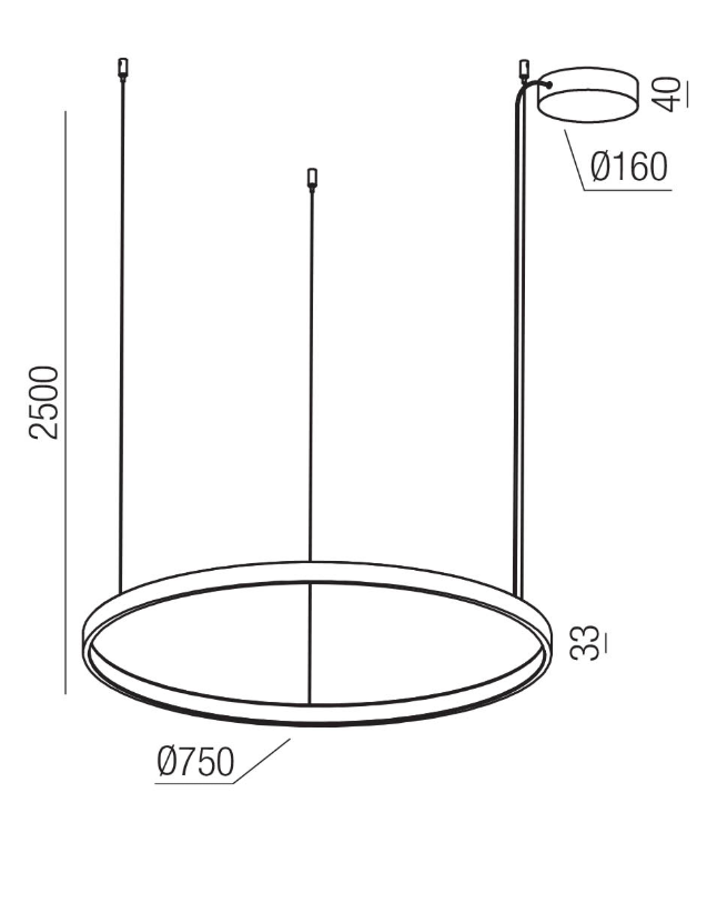 Redo Group Orion, Závěsné svítidlo 75cm, 58W, 3CCT 2700K/3000K/4000K, IP20