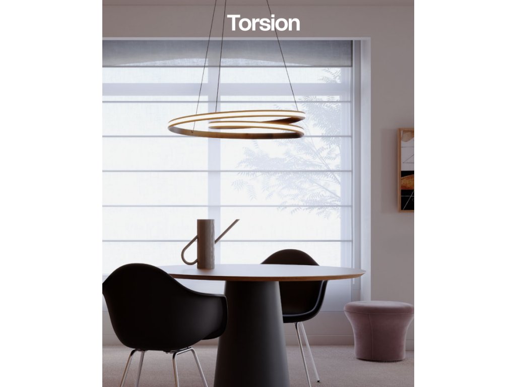 Redo Group Torsion je moderní závěsné LED svítidlo s vysokým výkonem 40 W, které nabízí tři volitelné teploty světla – teplou 2700 K, neutrální 3000 K a denní bílou 4000 K. Díky světelnému toku až 4488 lumenů poskytuje velmi silné a rovnoměrné osvětlení, ideální pro větší obytné i komerční prostory.