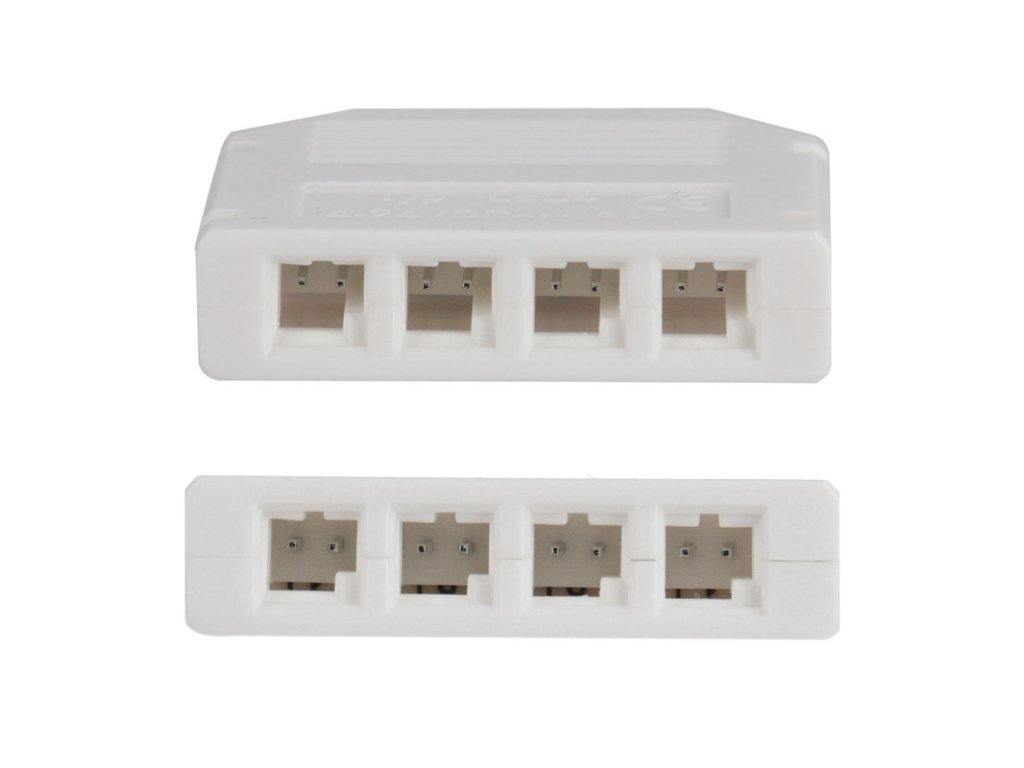 Rozbočovač 4 x FP - 1 x MP konektorem (vidlice), 0,1m kabel AWG20/0,5mm2, bílý max. 3A, rozměry: 41x10x38 mm