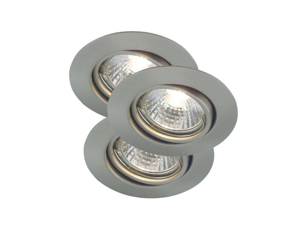 Sada 3 ks vestavných LED bodovek Nordlux Triton, o průměru 9 cm. Výhodou je možnost nastavení sklonu až 25°. Nabízíme v několika povrchových úpravách. LED bodovka Triton se hodí pro montáž do sádrokartonových podhledů a je vhodná pouze pro vnitřní osvětlení. Žárovky nejsou součástí balení, můžete si je vybrat z naší široké nabídky. Případně můžete zvolit stmívatelné žárovky a jednoduše upravit intenzitu světla. Ideální do chodby, předsíně, ale i obývacího pokoje.
