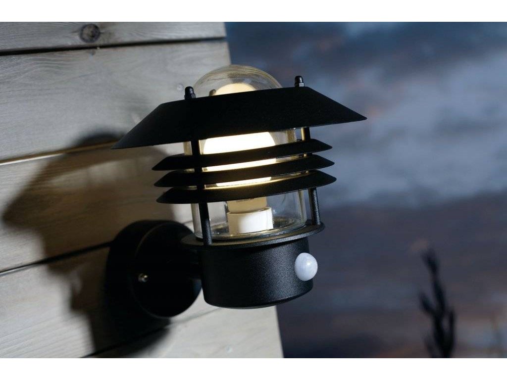 Venkovní nástěnné svítidlo NORDLUX Vejers je osazené pohybovým senzorem a je tvořeno kulatou základnou a robustní lampovou hlavou směřující nahoru. Hlavu lampy tvoří středové oblé sklo se stříškou a další kruhové dekorativní prvky dodávající svítidlu originální vzhled. Senzorové svítidlo nabízíme v černém nebo galvanizovaném provedení. Obě varianty jsou zhotoveny tak, aby odolali i nepříznivému počasí a výrobce dává 15 let záruku na rozsáhlou korozi. Možno doplnit nástěnnou lampou nebo zahradním sloupkem ve stejném designu.