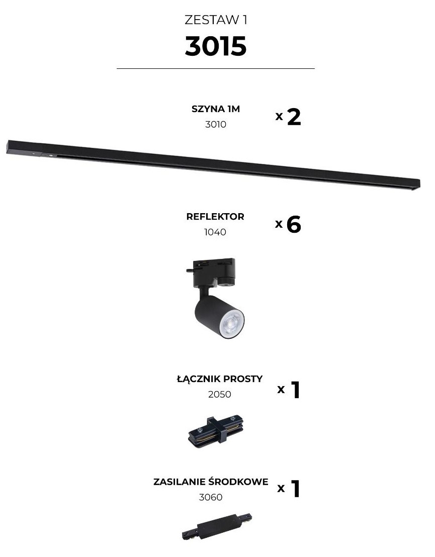 Sada 3015 1-fázového systému je praktickým a efektivním řešením pro instalaci stropového osvětlení ve vašem interiéru. Tato sada obsahuje vše, co potřebujete pro vytvoření jednoduchého okruhu