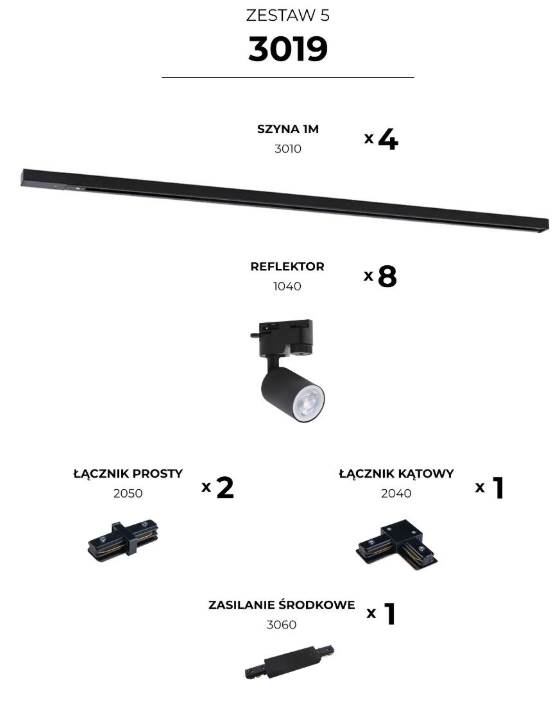Sada 3019 1-fázového systému je praktickým a efektivním řešením pro instalaci stropového osvětlení ve vašem interiéru. Tato sada obsahuje vše, co potřebujete pro vytvoření jednoduchého okruhu