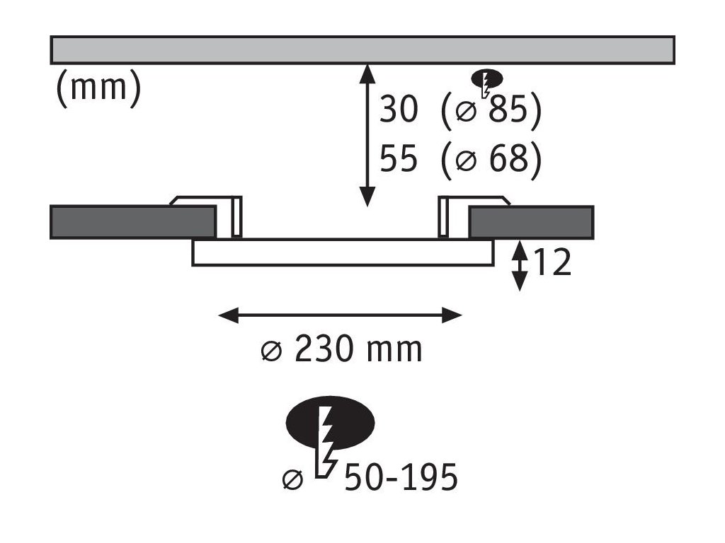| Montážní otvor v mm: | 50-195 |