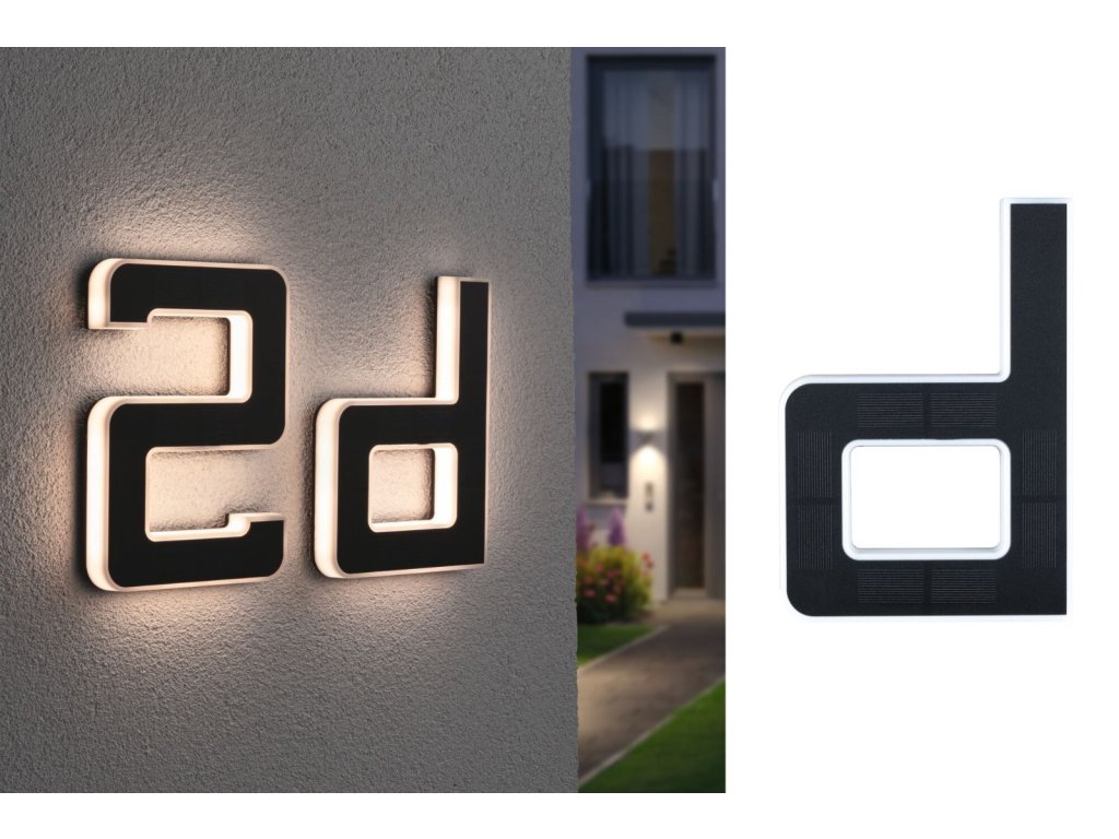 Solární LED domovní číslo a svítidlo písmeno D vč. vyměnitelné nabíjecí baterie IP44 3000K černá - PAULMANN