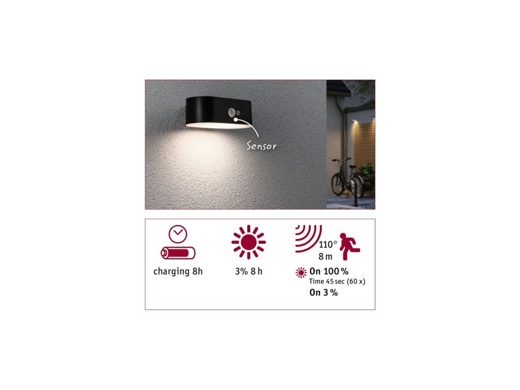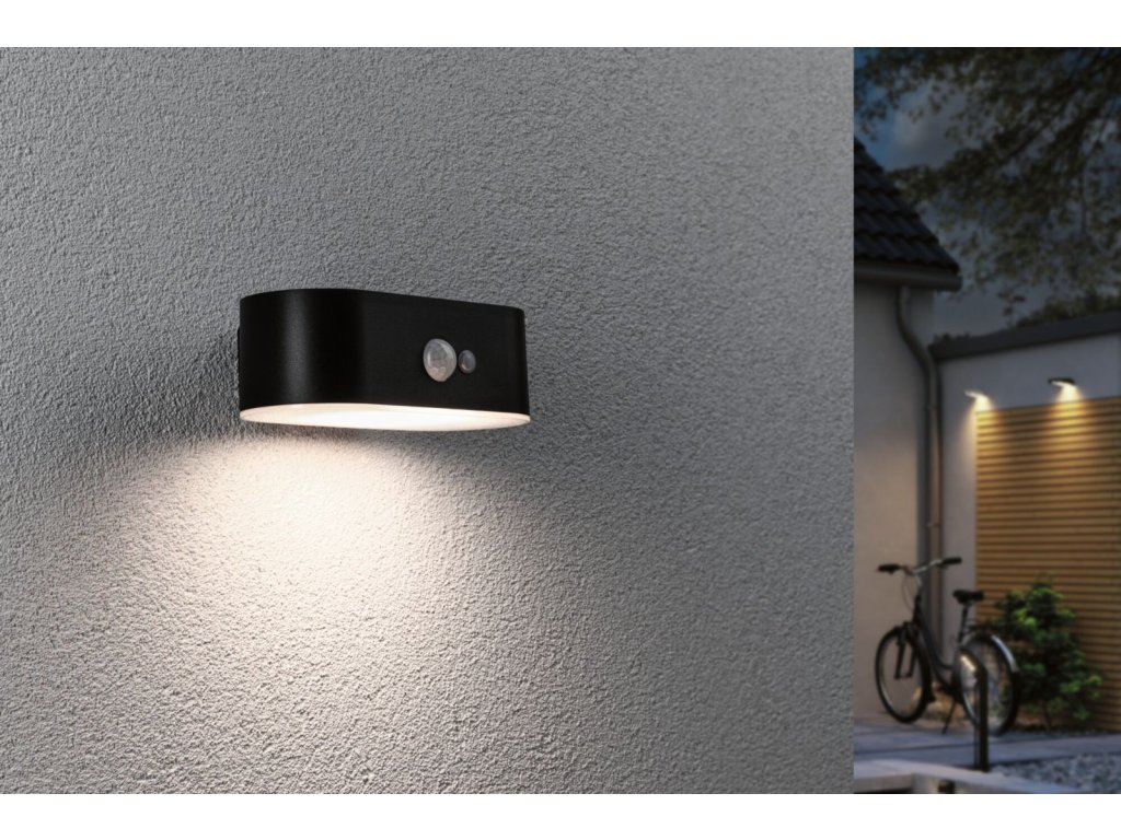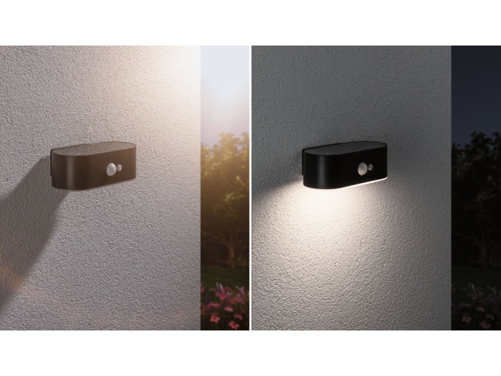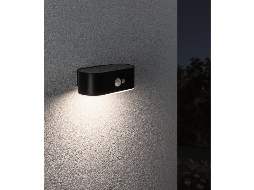 Solární LED venkovní nástěnné svítidlo Adya pohybové čidlo IP44 3000K černá - PAULMANN