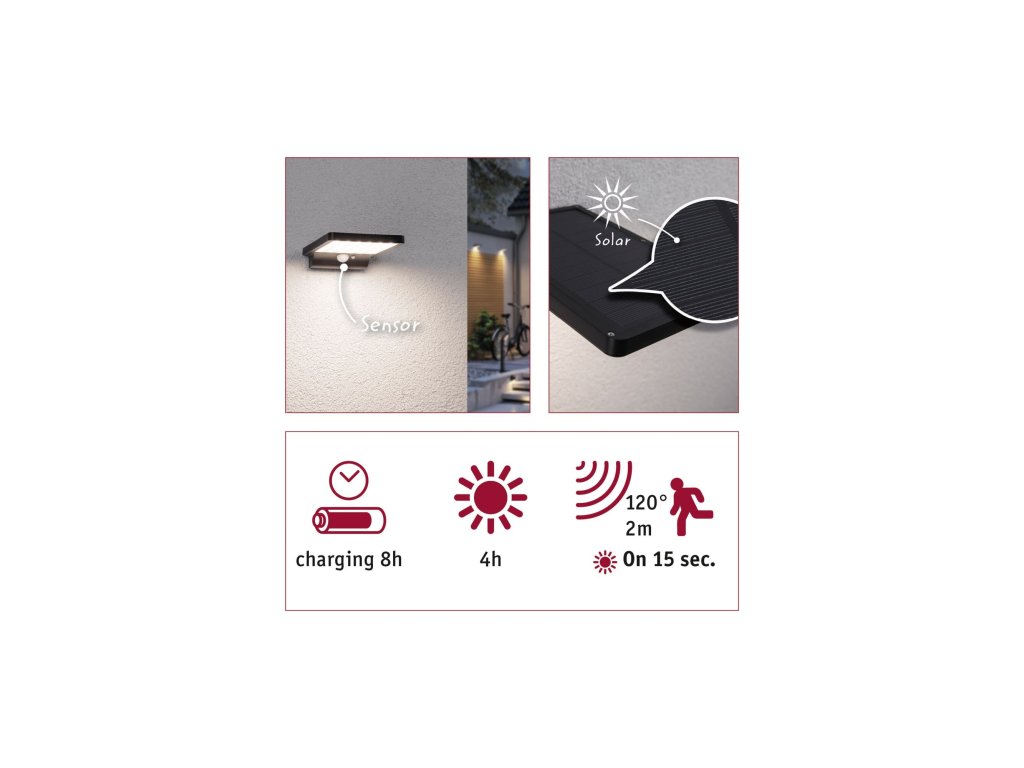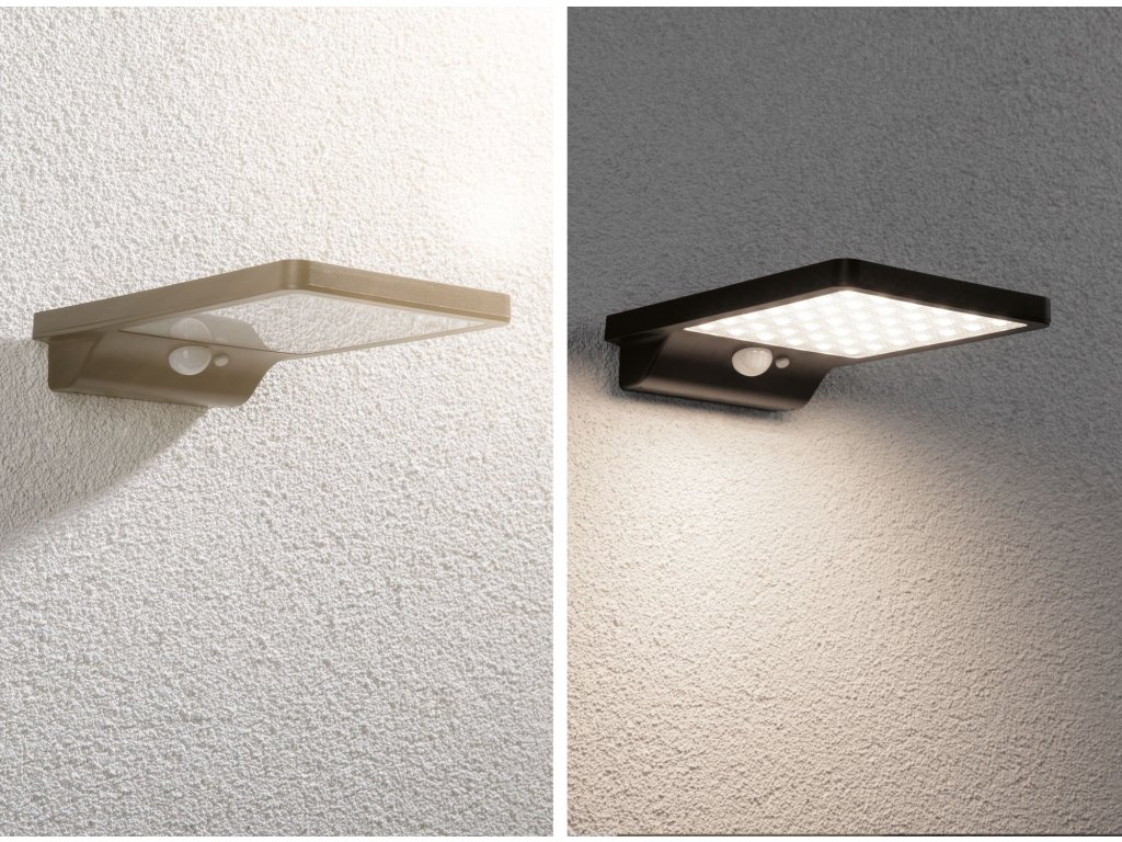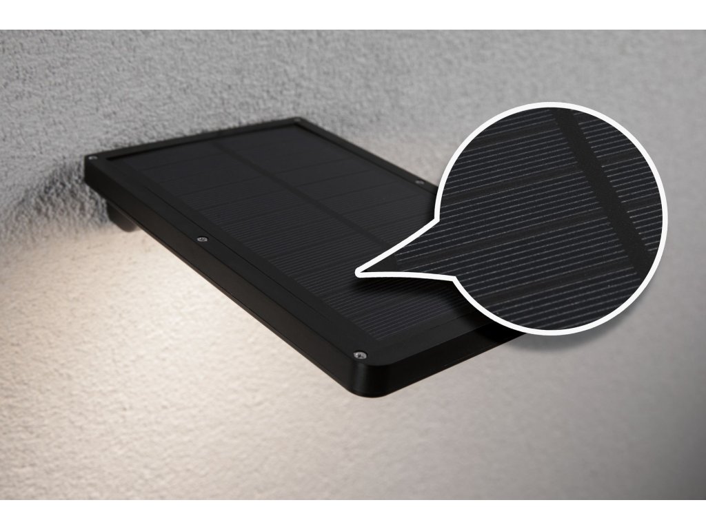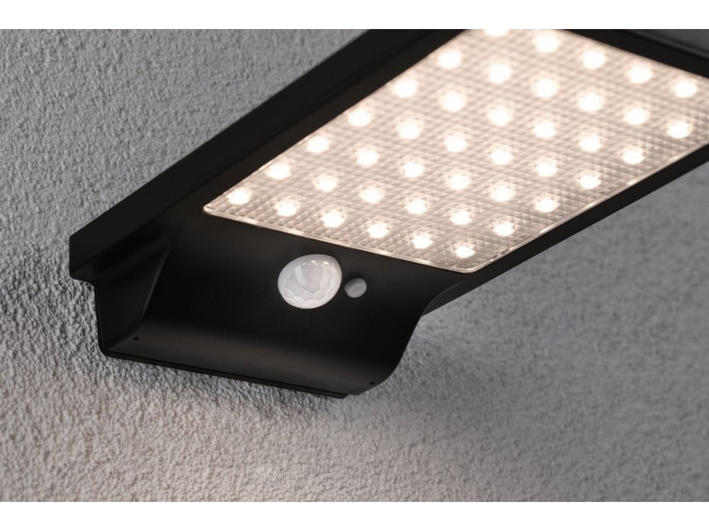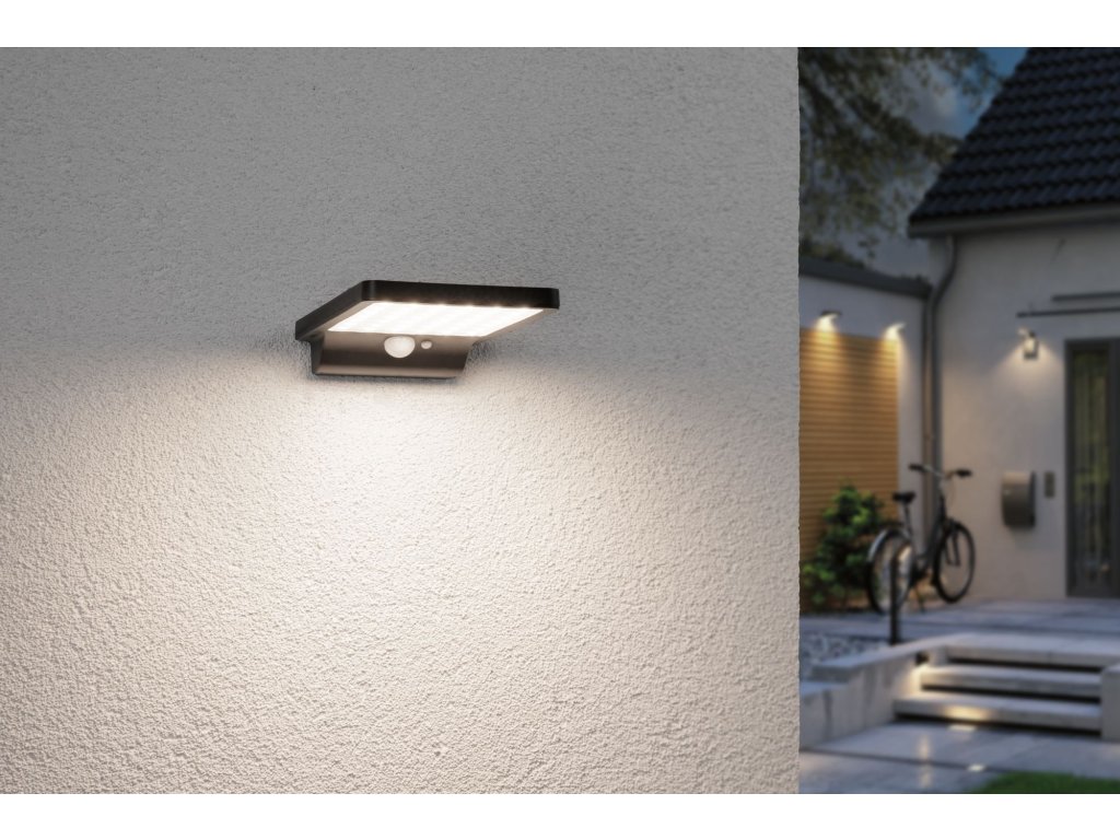 Solární nástěnné svítidlo Solveig černá IP44 teplá bílá soumrakový senzor a pohybové čidlo - PAULMANN