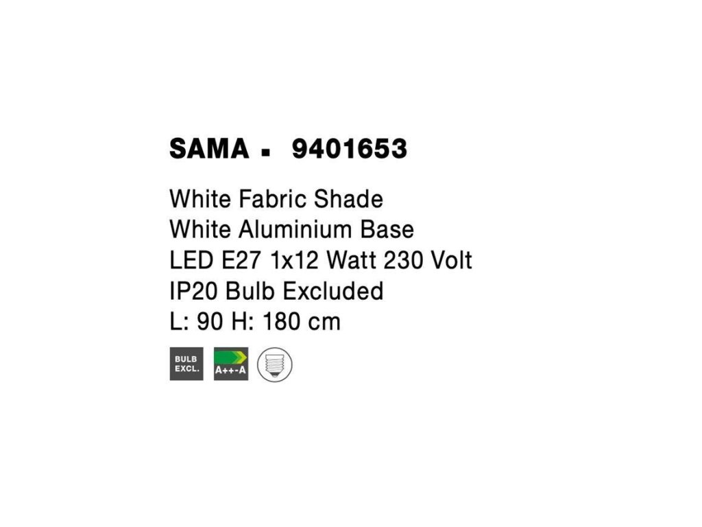 Stojací lampa SAMA bílé stínidlo bílá hliníková základna E27 1x12W 230V IP20 bez žárovky - NOVA LUCE