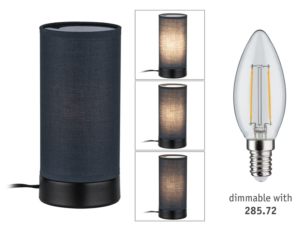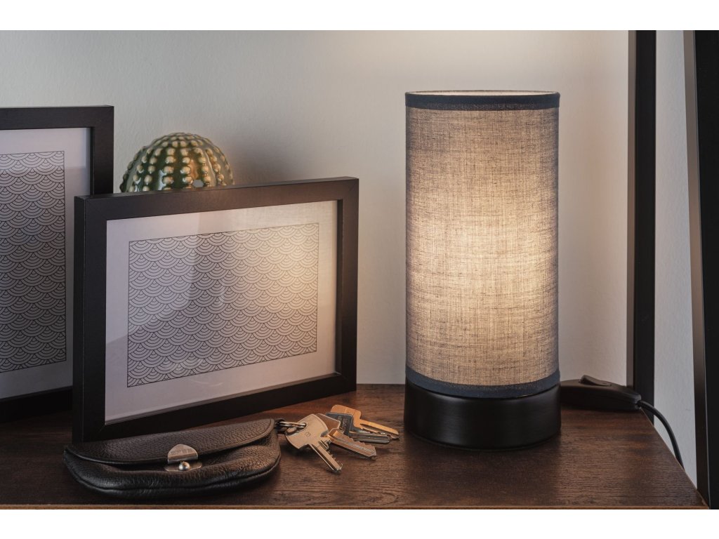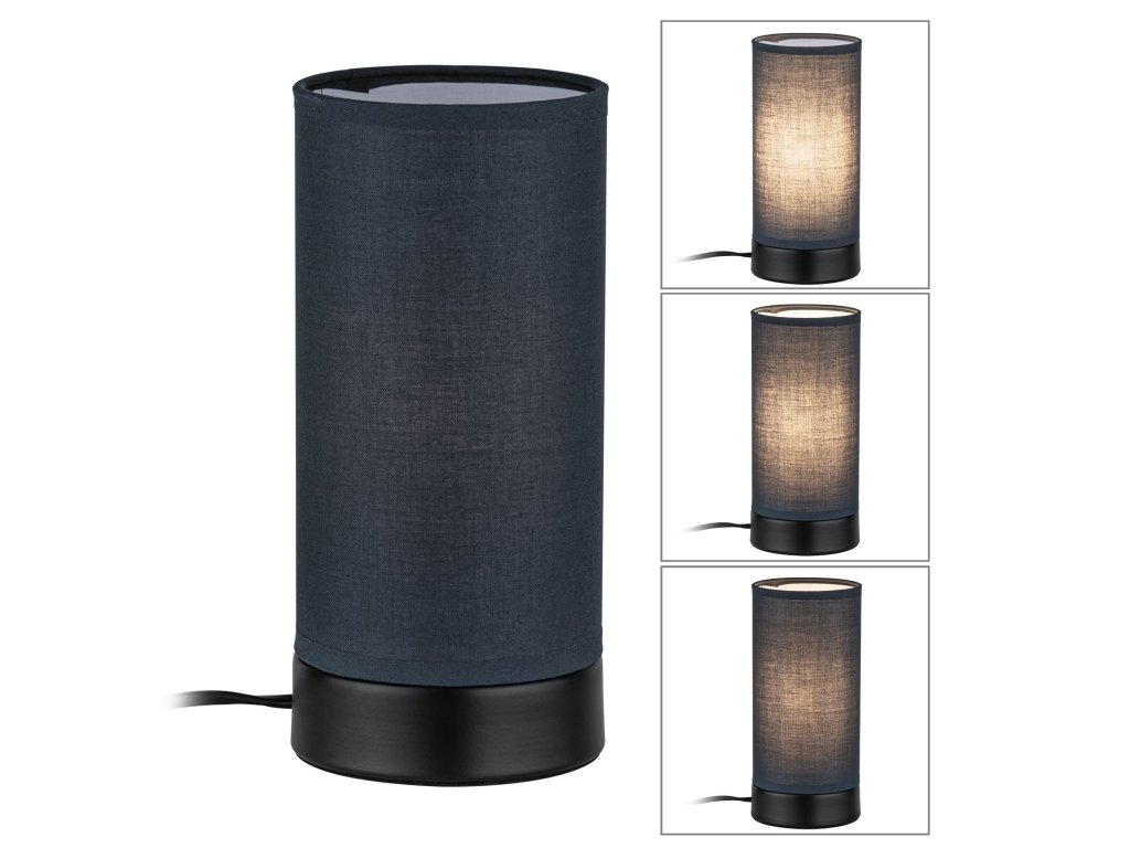 Stolní lampa Pia látkové stínidlo 1-ramenné černá mat/šedá E14 bez zdroje světla - PAULMANN