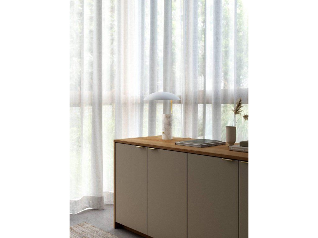 Stolní lampička NORDLUX Mademoiselles , kdy se dánská designérka (Sofie Lefèvre) inspirovala moderním italským stylem a vytvořila hravou, nevšední lampu. Na první pohled Vás zaujme "oversized" stínidlo, mramorová základna a vypínač na těle svítidla. Světlo se odráží nahoru na spodní část stínidla a tím vytváří měkké, nepřímé osvětlení. Je zde vidět i elegantní kombinace mramoru, mosazi a kovu. Zajímavostí je i možnost naklápění stínidla dle Vašich preferencí. Doporučujeme do obývacího pokoje či relaxační zóny. Nabízíme ve dvou barevných variantách bílé a černé. Aby byla lampička zcela dokonalá, nezapomeňte na vhodný zdroj s paticí GU10, který není součástí svítidla.