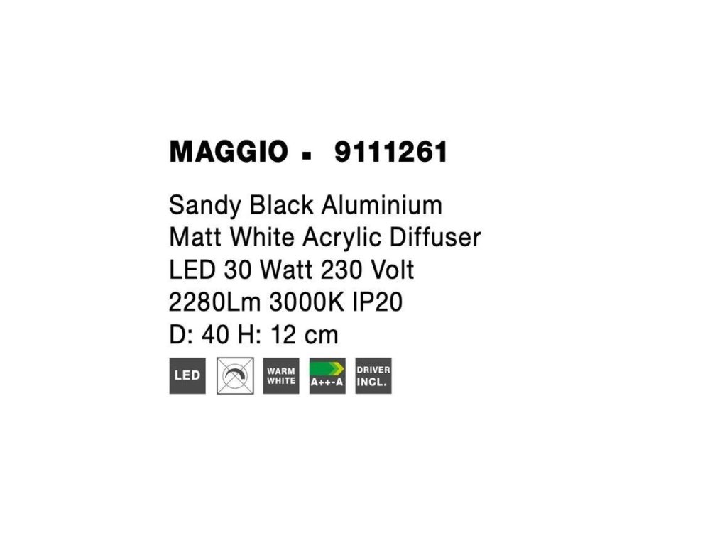 Stropní svítidlo MAGGIO černý hliník matný bílý akrylový difuzor LED 30W 230V 3000K IP20 - NOVA LUCE