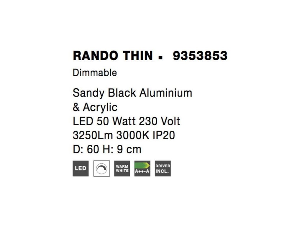 Stropní svítidlo RANDO THIN černý hliník a akryl LED 50W 230V 3000K IP20 stmívatelné - NOVA LUCE