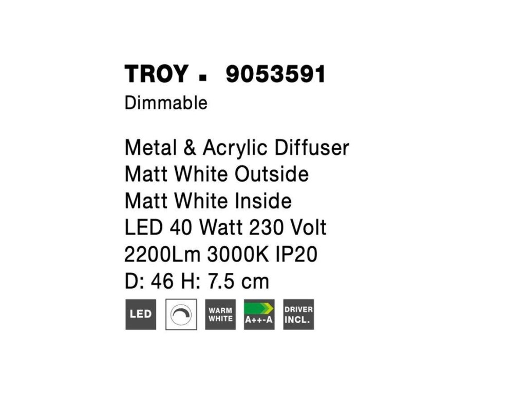 Stropní svítidlo TROY kov a akrylový difuzor matná bílá LED 40W 230V 3000K IP20 stmívatelné - NOVA LUCE