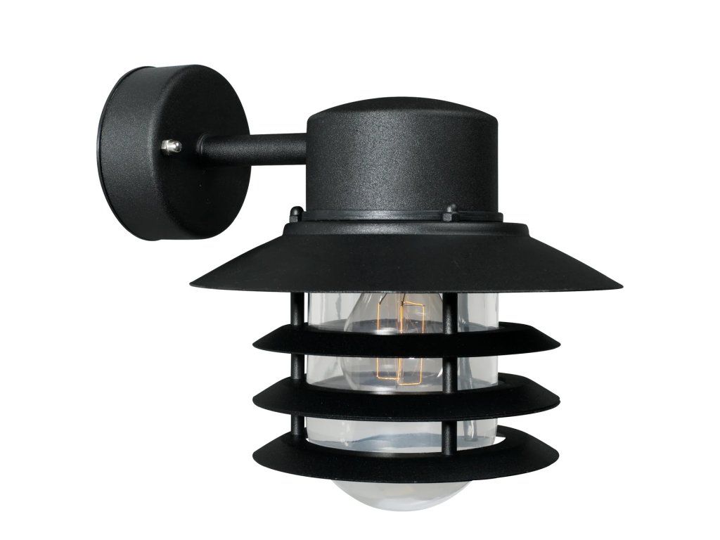 Venkovní nástěnná lampa NORDLUX Vejers down, s kulatou základnou a robustní lampovou hlavou směřující dolů zajistí ideální osvětlení vstupu do domu, terasy či okolí domu. Hlava lampy je tvořena středovým oblým sklem, stříškou a třemi kruhovými dekorativními prvky, které dodávají svítidlu pěkný vzhled. Svítidlo je možné kombinovat s dalšími typy ze série. Nezapomeňte vybrat vhodnou žárovku s paticí E27. Zvolit můžete dokonce SMART žárovku.
