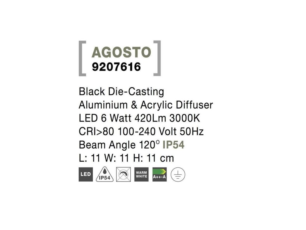 Venkovní nástěnné svítidlo AGOSTO černý hliník a akrylový difuzor LED 6W 3000K 100-240V 120st. IP54 - NOVA LUCE