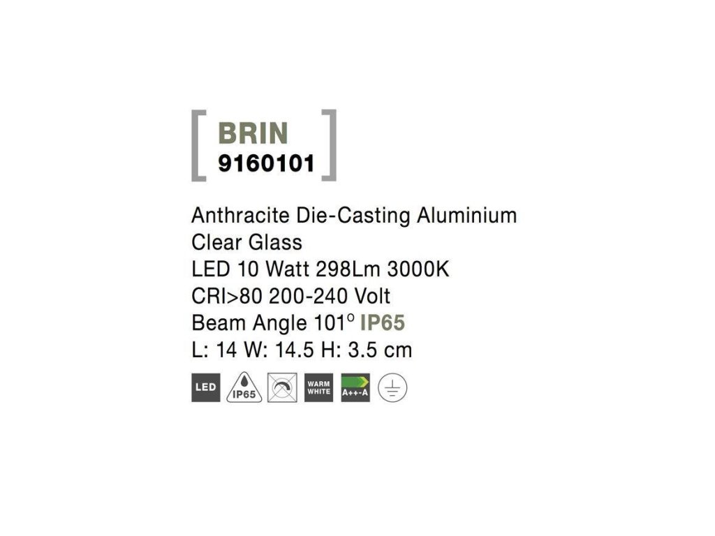 Venkovní nástěnné svítidlo BRIN antracitový hliník čiré sklo LED 10W 3000K 200-240V 101st. IP65 - NOVA LUCE